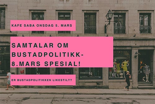 | 5. mars arrangerar vi den tredje samtala i serien Bustadpolitiske samtalar, og denne gongen skal vi snakke om eit tema som får lite merksemd i bustadpolitikken - likestilling og kvinners posisjon. Korleis er det å bryte ut av ein relasjon og plutseleg stå aleine med omsorg for barn, når du ikkje kan kjøpe ny bustad? Og kor skal kvinner på krisesenter flytte?